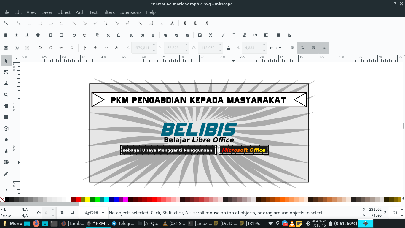 Bismillahirrahmanirrahiim. Berbagi pengalaman selama 2 tahun terakhir menggeluti dunia Free Software . Misalkan GNU/Linux [Linux Lite 4.2], LibreOffice, InkScape, GIMP, PSPP, GNU Octave, Telegram, LAMPP,